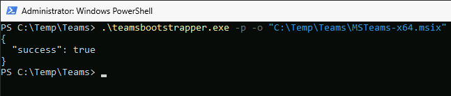4. Install the new Teams MSIX using the bootstrapper: